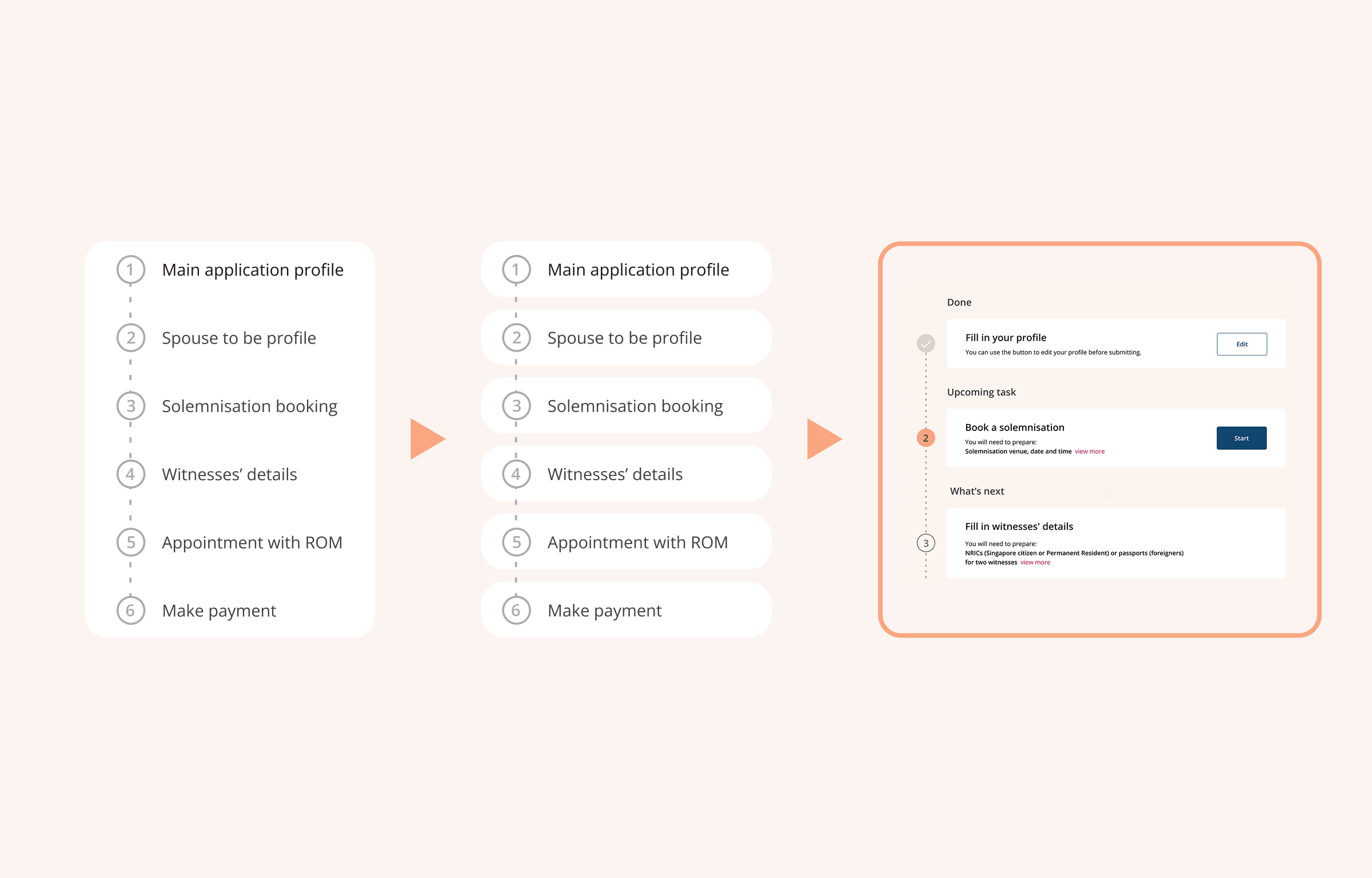 Different type of users has different process to get married in Singapore. Users are not clear about what they have to do next based on their type.